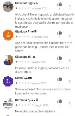 “Solo in inglese? Non compare scritto che in Lombardia non funziona” avvisa G.B.